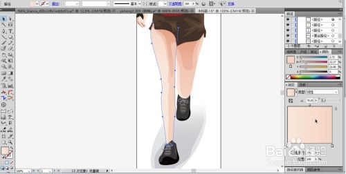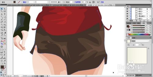 继续绘制女孩的短裤的基本轮廓,我们用棕灰色填充短裤的基本路径,把亮区设置在正面的褶皱区域,我们用灰白色来填充。