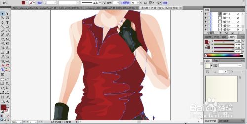 继续绘制出女孩的上衣,我们用红色填充服饰的主体,在左侧区域用淡红色填充亮区,在高光区域让红色的色调更淡一些。接下来再绘制出女孩的双手的动作,皮肤区域用不同色调的粉红色来填充。