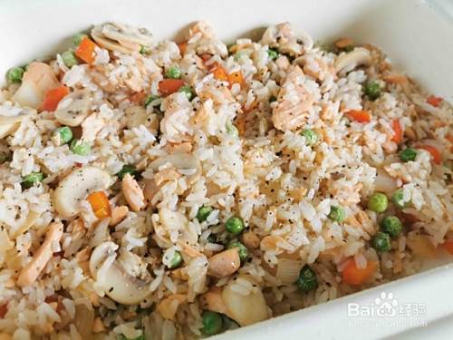 喜欢吃炒饭,因为快速又简单,平时就爱三文鱼,但是孩子不生食,所以每次都是做炒饭,营养又美味超级美味孩子很喜欢吃看见孩子高兴希洪吃我也就特别开心老公回来一至跨我说我做饭太好吃了