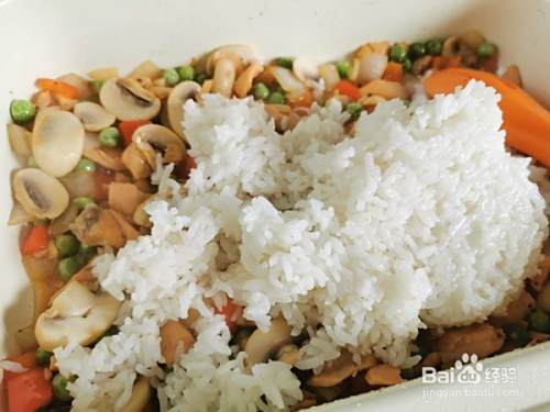 加入米饭翻炒均匀,可以多炒一会更入味