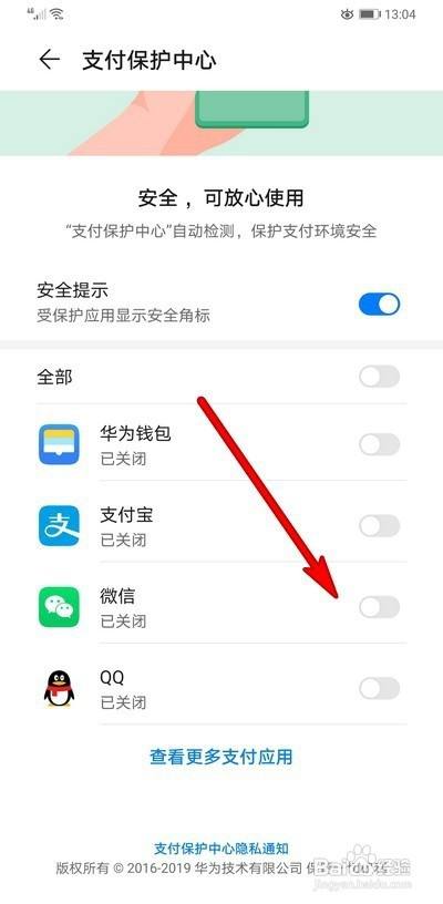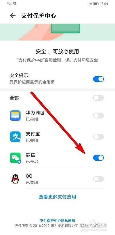 7、这时候可以看到蓝色对勾图标消失了。出现这个标志就是开启了支付保护。