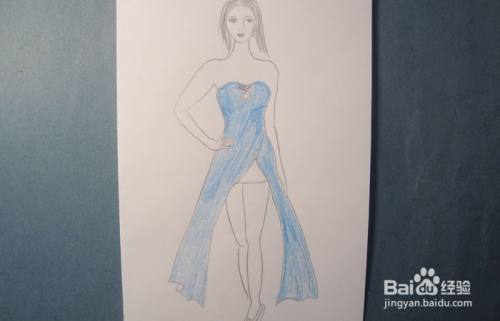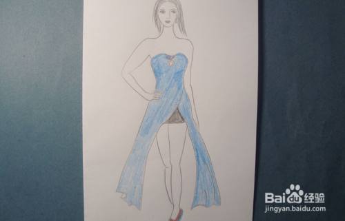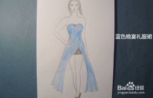 孩子在学服装设计时,需要自己设计服装,可以使用彩色铅笔来画出设计图。比如设计蓝色晚宴礼服裙。那么,蓝色晚宴礼服裙怎么画呢?可先用铅笔在白纸上画出草图,注意添加艺术规范的色彩搭配,使和谐美观,接着用彩铅笔均匀的涂上颜色。这里给大家分享蓝色晚宴礼服裙绘画的方法。