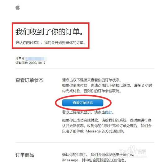 9.收到邮件提示【我们收到了你的订单】,点击【查看订单状态】可实时查看订单状态,预购完成,等待收取手机快递即可。
