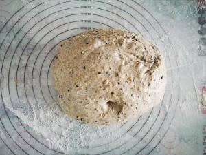 等两小时后将面团取出,揉面,把里面的空气给揉出来。