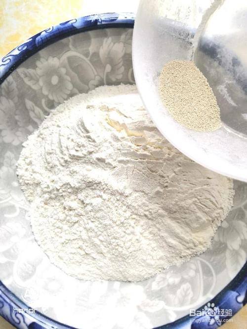 首先将酵母用温水化开,然后倒入面粉中加入适量白糖。
