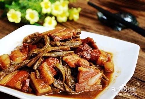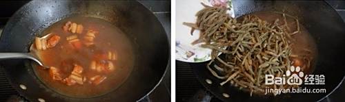 大火煮开,小火20分钟,放入豇豆干,放入咸肉,加糖,鲜抽,加辣椒酱,大火煮开,小火30分钟