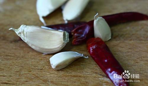 蒜末干红辣椒爆锅,放入腊肉煸炒,滗出腊肉肥肉中的油,让腊肉呈透明色