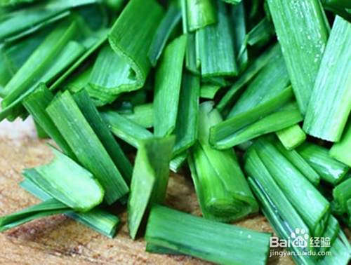 放入豇豆干段继续翻炒,直至豆干变色变熟,淋入适量鲜味酱油、将佐料拌匀后把青蒜叶放入,加适量盐,炒至蒜叶变色变熟