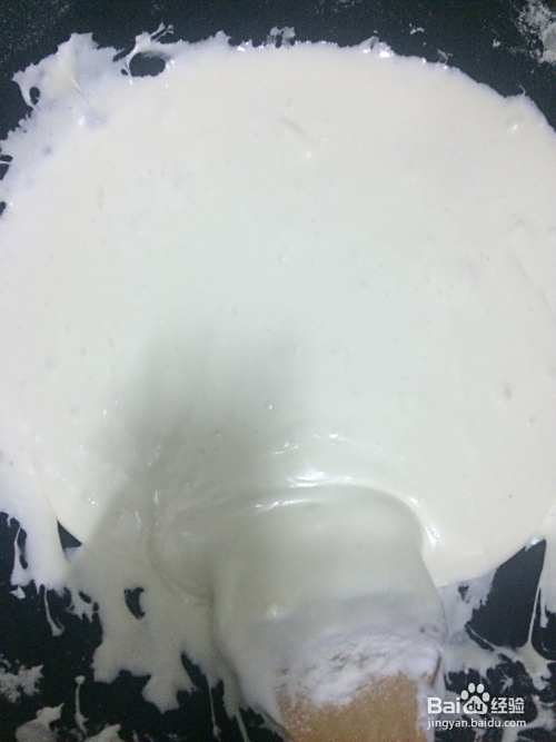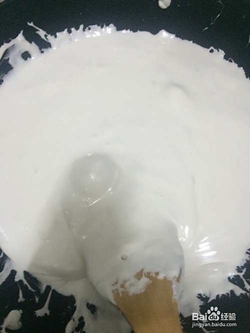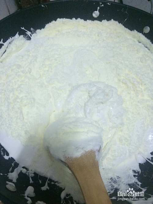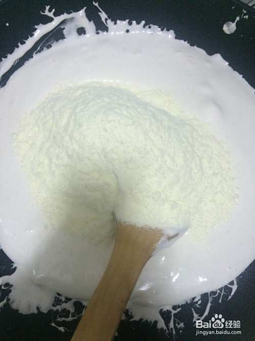 一直搅拌到奶粉全部融化(做抹茶味道的现在放入抹茶粉就可以了)