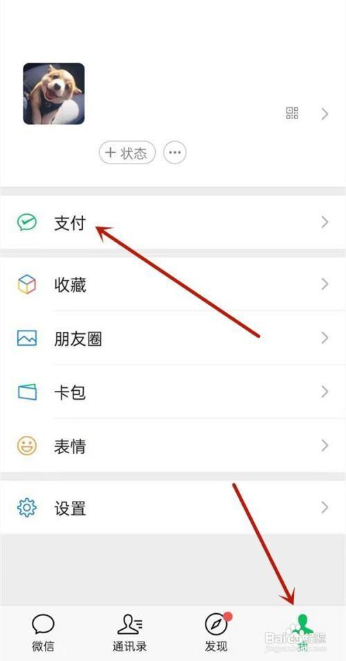 打开微信后,点击右下角我, 点击支付。