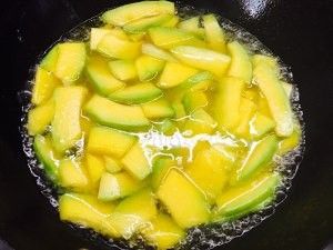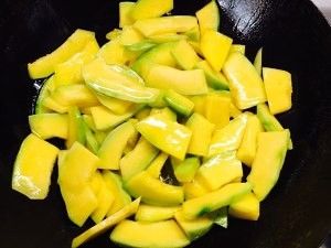 起锅热油,倒入南瓜和老姜片翻炒一会儿。