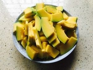 需要的食材,今天的南瓜是婆婆自己种的,用了四分之一。