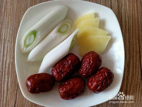 葱切段,姜切片,红枣洗净备用。