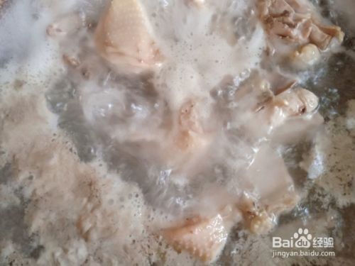 买来的土鸡斩小块,泡在清水中,祛除血水。
