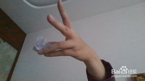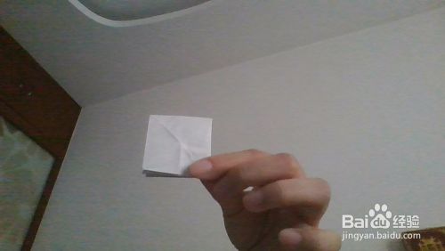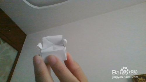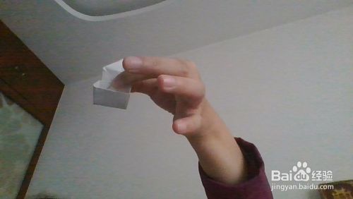 我们将折纸的2边展开,朝着里面翻折。打开折纸的一个角,将盒子的2边压着。使得变得立体。