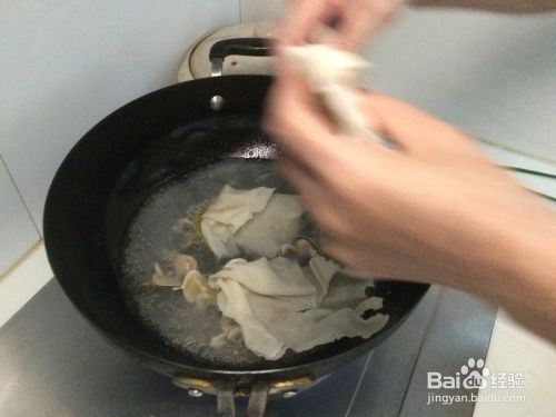 锅边片要用手撕开,尽量一次不要放太多下去,以免全都黏在一起