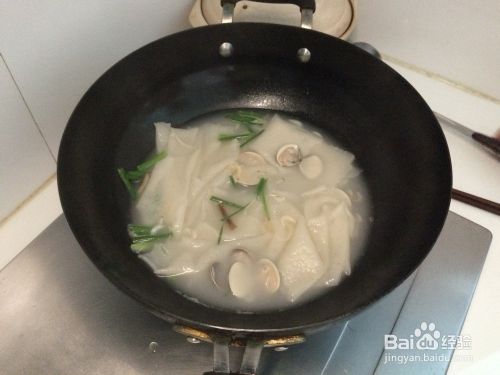 接着,用锅铲搅一下,加点盐巴,待锅里的水再次沸腾时,加点葱和味精即可出锅