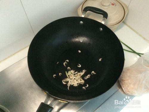 将油锅烧热,先将虾米倒入锅中炸一下,再加入点清水