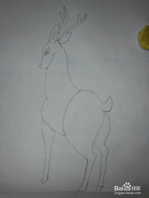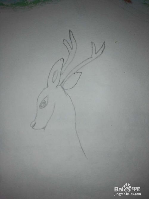 3接着我们画出另外一只耳朵,因为透视关系这只耳朵要画的小一些,鹿角就出耳朵出画。