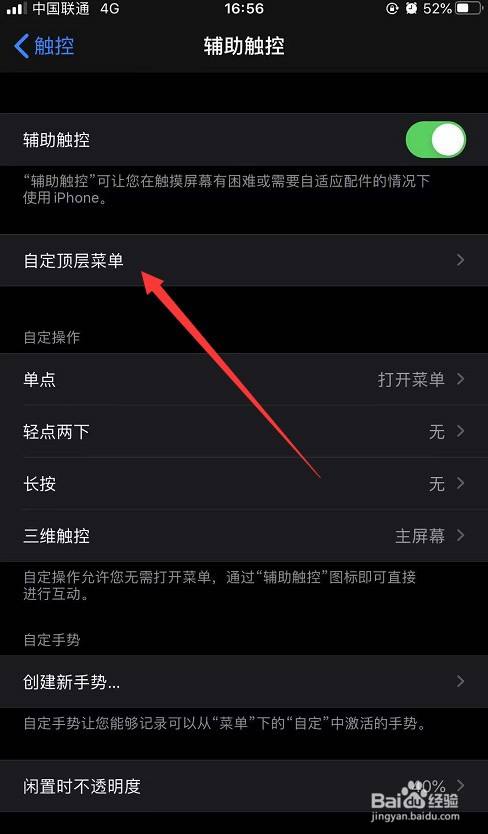 然后,点击“自定顶层菜单”后,添加截图功能