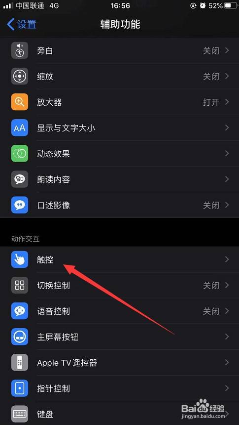 接下来,找到“触控”功能,点击进入