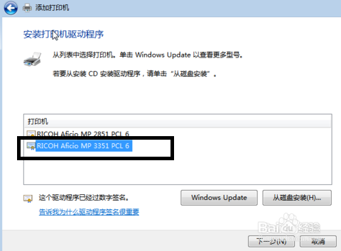 8.选择从磁盘安装,路径为我们之前下载驱动的目录,单击确定,选择“MP3351打印机”进行安装