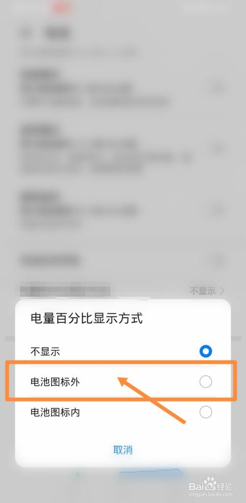 进入页面后,即可选择手机电量百分比显示方式为电池图标外,如下图所示: