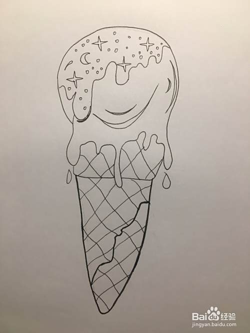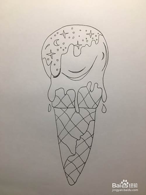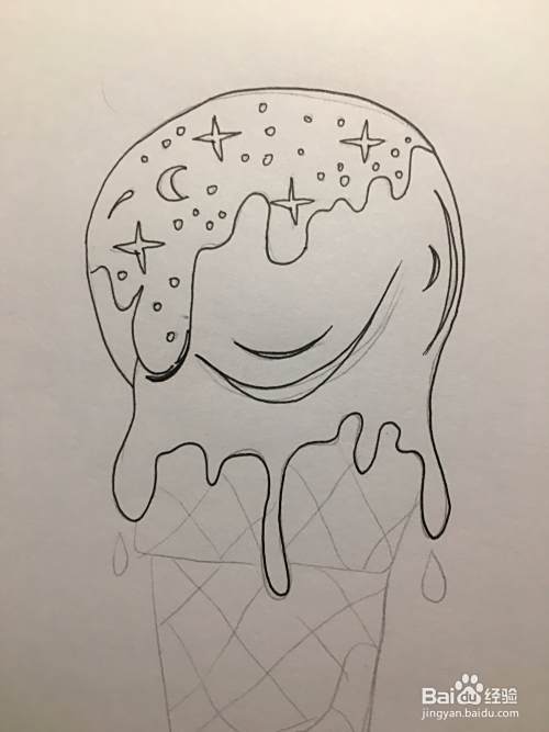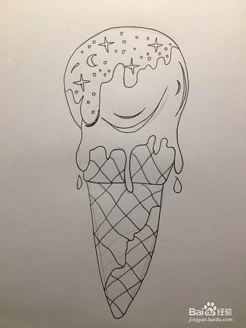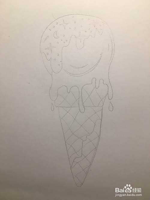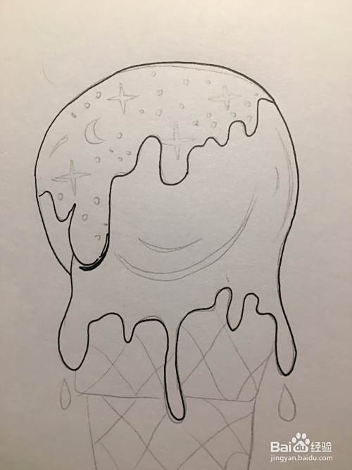 使用铅笔画冰淇淋的奶油,