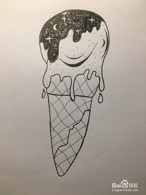 今天小编示范画脑洞想象力的星空冰淇淋。