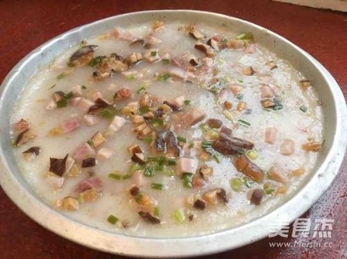 8把事先准备好的芋头香菇虾米放入和好的粘米粉水里面 搅拌均匀