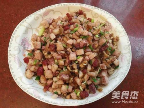 3下锅翻炒顺序为 芋头 腊肠 香菇 虾米