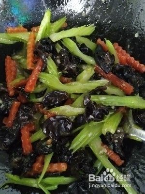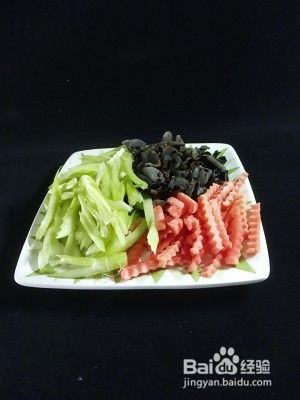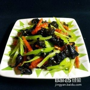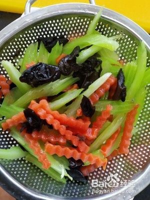 木耳提前泡发好,芹菜、红萝卜洗净切好备用。