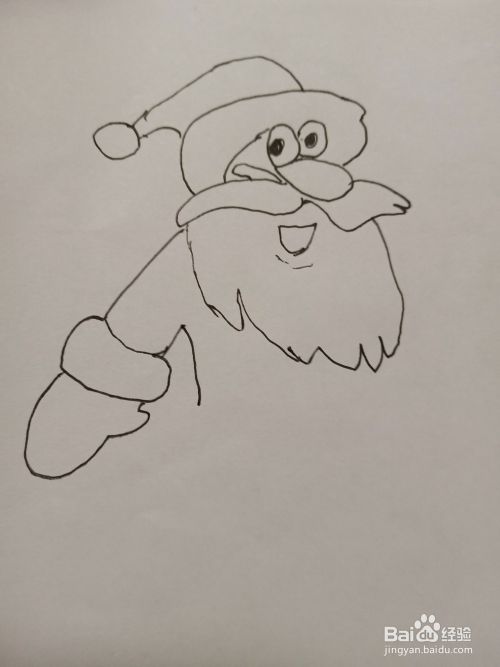 第五步,我们画圣诞老人的下半身,下半身比较容易,先画他的一只手,带着手套,然后画他的上衣。