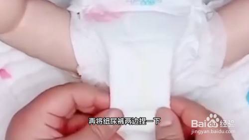 再将纸尿裤两边捏一下,这样方便宝宝伸腿。