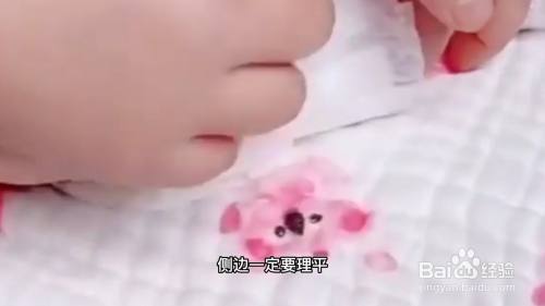 侧边一定要理平,避免硌到宝宝的身体,另一边也是同样的步骤,理平粘贴好,两边要对称。