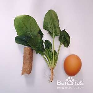 准备食材:山药、鸡蛋、菠菜