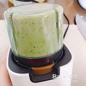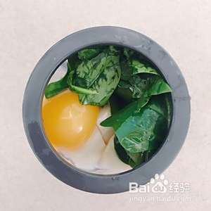 料理机里加入菠菜、山药、鸡蛋。