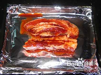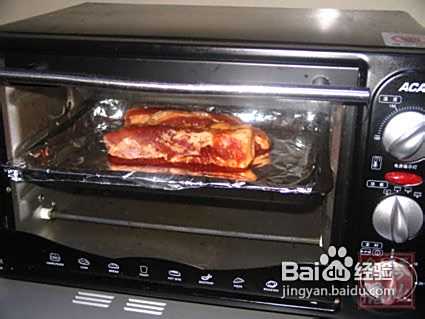 将肉切两段,放在垫了锡纸的烤盘上,入烤箱200度烤30分钟。