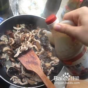 翻炒一会放入生抽上色,加入一小勺盐,糖,鸡精