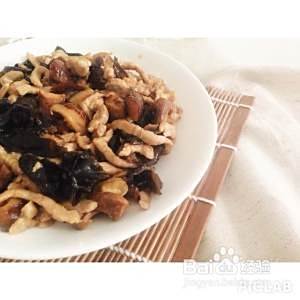 准备好材料瘦肉切成细条,加一点生粉,料酒,盐腌制15分钟