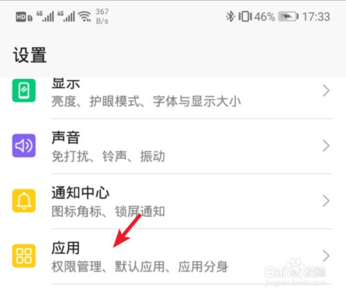 进入手机的设置列表后,点击应用的选项。