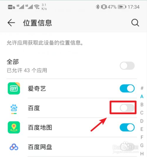 如果需要允许所有应用获取该权限,也可以点击上方全部后方的开关。