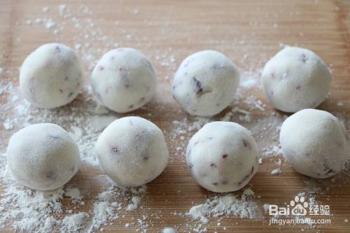 6、山药泥分成大约40克的小剂子,撒上适量的熟糯米粉搓圆;