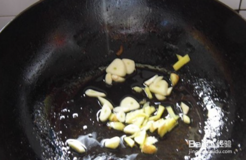 另取锅,锅里烧油至7成热,倒入姜、蒜小火炒出香味