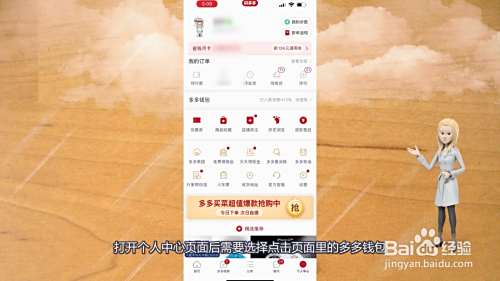 打开个人中心页面后需要选择点击页面里的多多钱包。