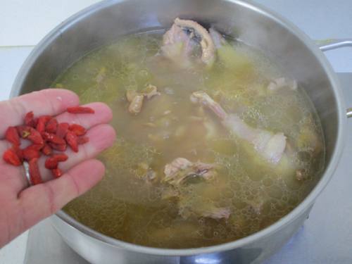 8再把鸡油菌倒入盖上大火烧开后转小火炖1个半小时