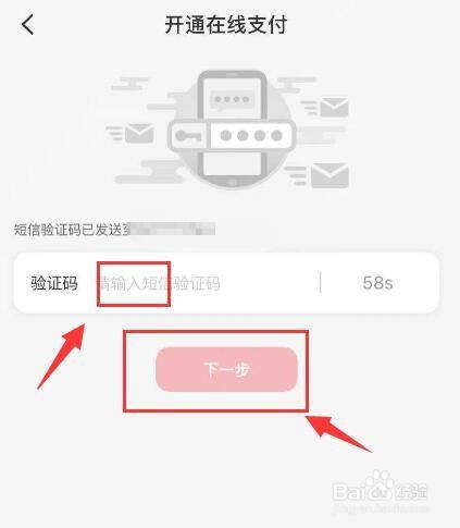 接着,在打开的界面中,输入收到的验证码,完成后点击“下一步”。如图: