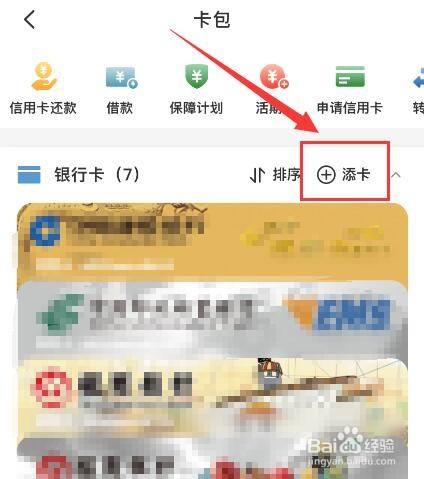 接着,进入卡片管理界面,在界面中点击“添卡”。如图: