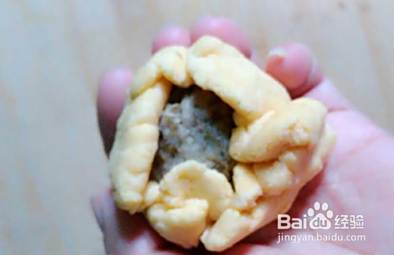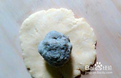和好后醒三十分钟,捏成一个个小圆压扁把豆沙放中间。