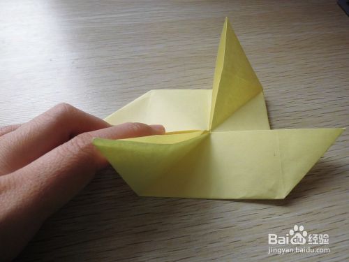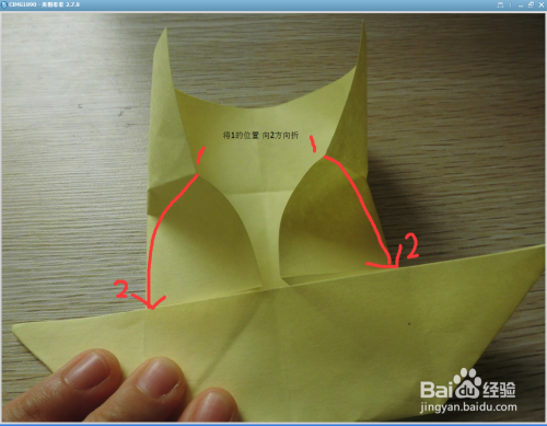 将两个角按照箭头的方向折。(如图)